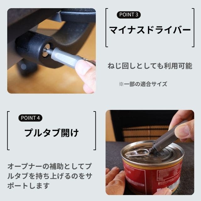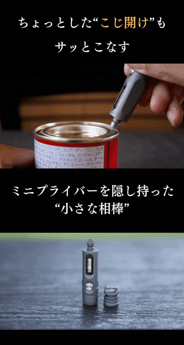 - 【こじる作業ができるミニプライバーを内蔵】缶開け、マイナスドライバー、荷物の開封を助けるライト