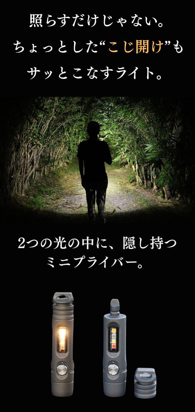 「Makuake(マクアケ)」は、実行者の想いを応援購入によって実現するアタラシイものやサービスのプラットフォームです。このページは、 プロダクトカテゴリの 「【こじ開け・フタ開けOK】ミニプライバー搭載。2光源をもつ超小型チタン製懐中電灯」プロジェクト詳細ページです。