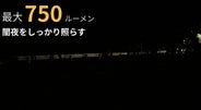コンパクトボディから放たれる、最大750ルーメンの強力な光。暗所の作業も夜道の一歩先も、しっかり照らします。