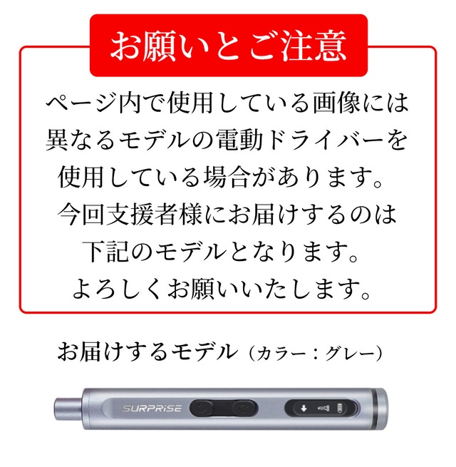 リターン品の配送が完了するまで、弊社は【電動精密ドライバー】の日本における独占販売権を有する正規代理店です詳細に関しては、ページ下部のリスク&チャレンジをご確認ください