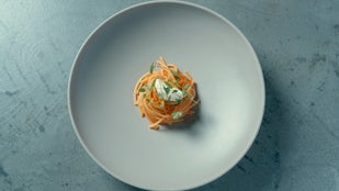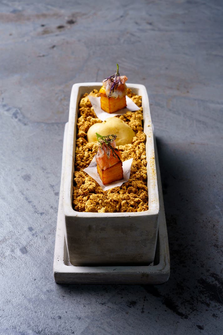 辛味にはシェフの故郷、新潟の神楽南蛮という伝統野菜を使い、