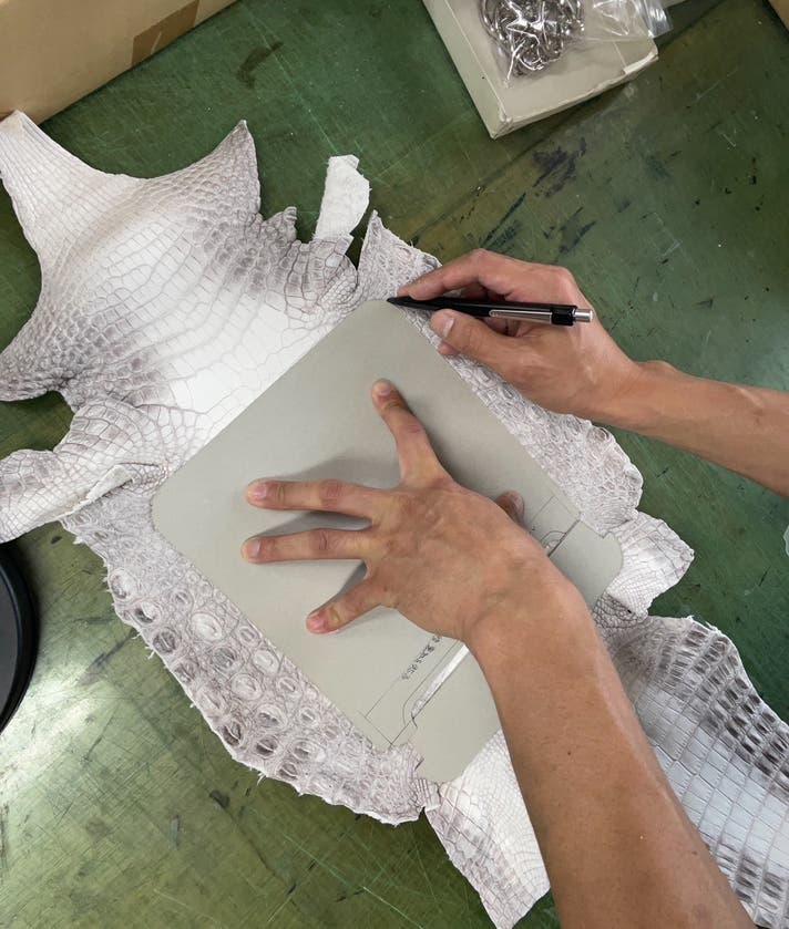 この希少なレザーを、日本の熟練職人が一点一点
