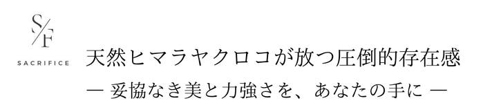 「Makuake(マクアケ)」は、実行者の想いを応援購入によって実現するアタラシイものやサービスのプラットフォームです。このページは、 ファッションカテゴリの 「【SACRIFICE】天然ヒマラヤクロコが放つ圧倒的存在感」プロジェクト詳細ページです。