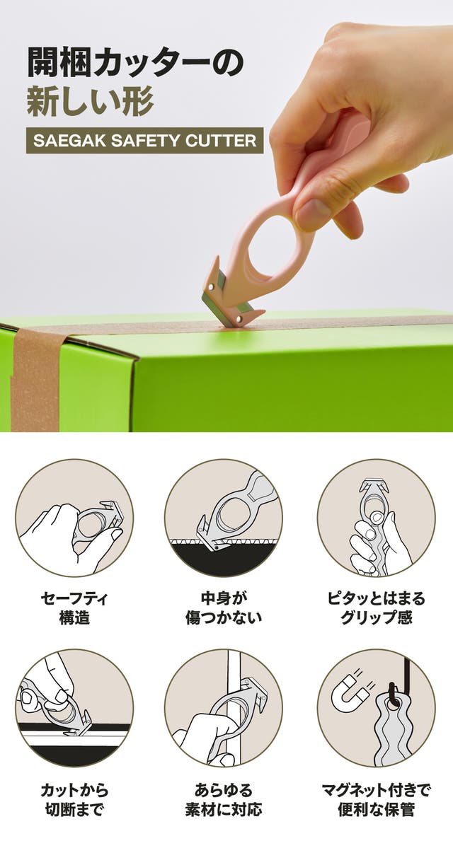 この商品を輸入しようと思った理由:毎日届く荷物。開梱作業の度にカッターやハサミを探すのが億劫でした。そんな中、コンパクトでどこにでも保管できるセガクのセーフティカッターを見つけました。多くの皆様にもこの便利さを伝えたいとプロジェクトを開始することにしました。