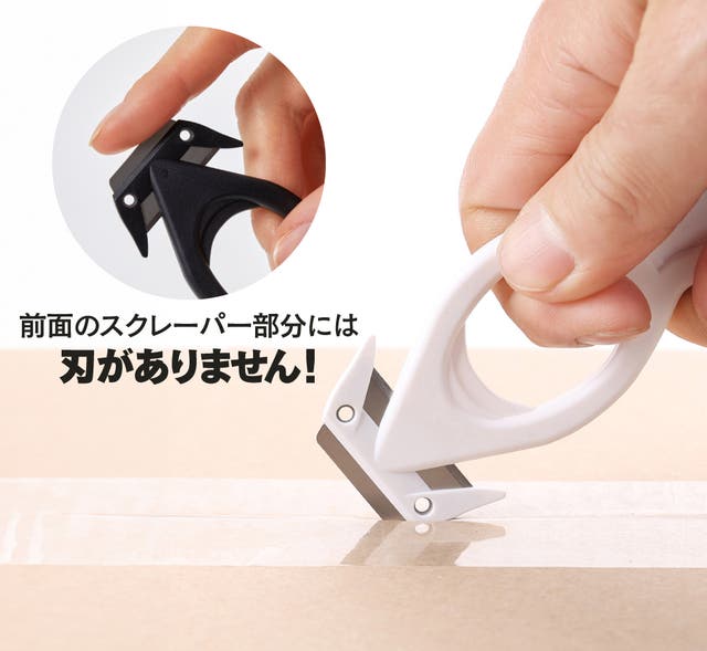 スクレーパー部分を使うとシールやガムテープなどを楽に剥がすこともできます。 様々な場面で便利にセガクのセーフティカッターをお使いください!