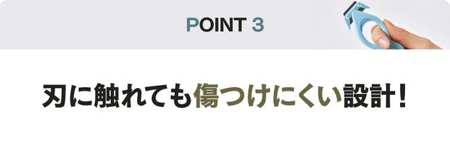 セガクのセーフティカッターは上部は刃に触れても手が傷つかないように設計されています。