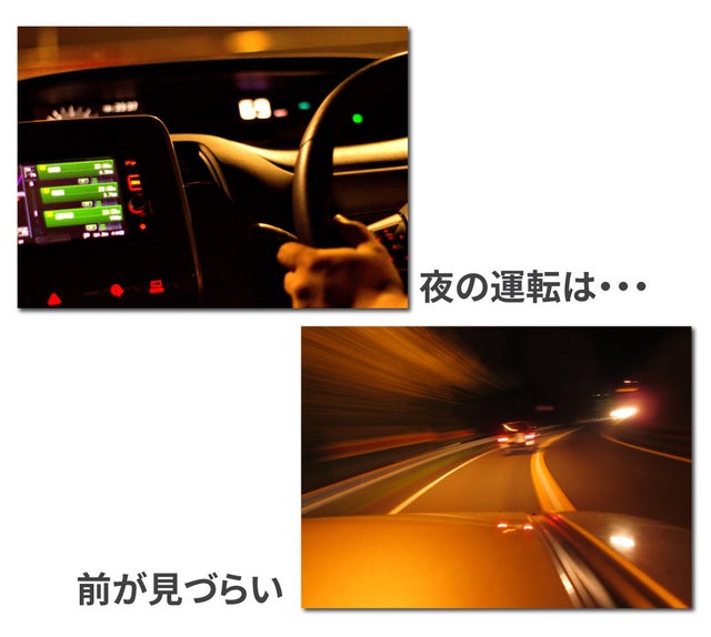 皆様も夜の運転で前方が見づらかったり、危ない目に合われた経験があるかもしれません。