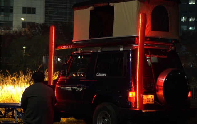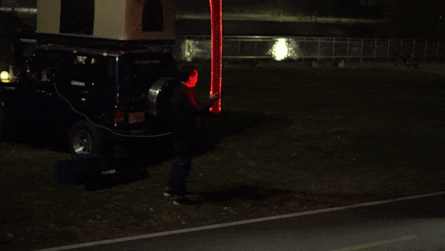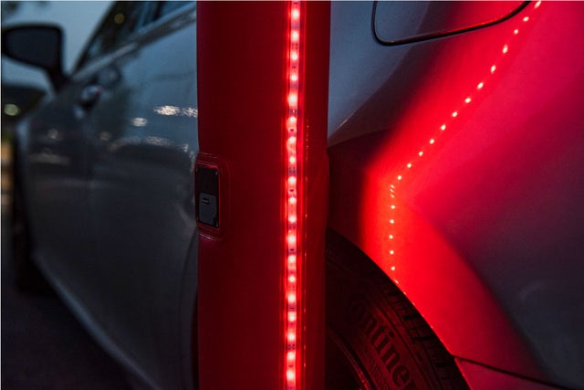 走っている車から見えるように、セーフパックは地面ではなく車上2メートルの高さまで装着可能とし、またLEDで明るく照らし、高い視野を確保しました。
