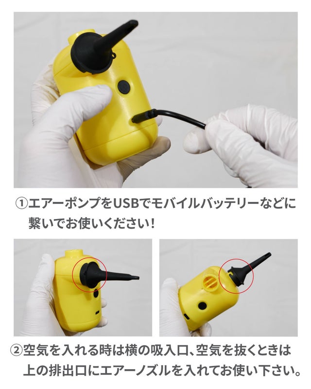 その後はエアノズルを外して口で3回程、空気を入れてください。