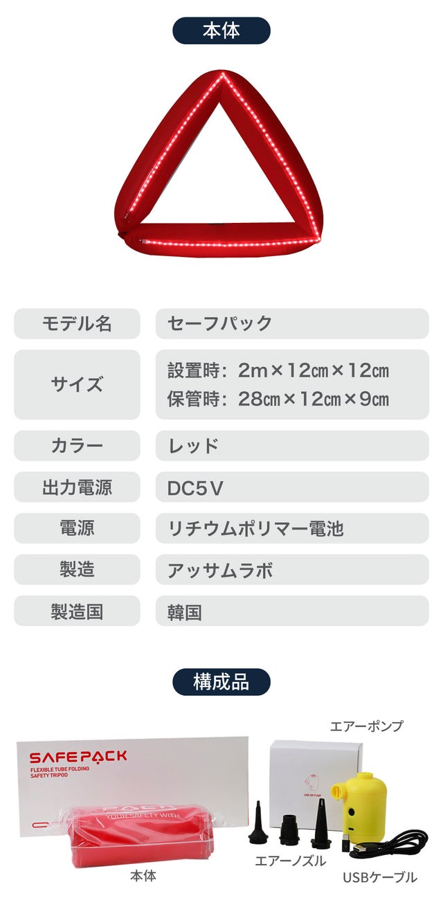 セーフパックはチューブ素材という独特の長所を通じて自動車事故などを知らせるためだけでなく、災難時や防災時にも皆様の安全を守るサポートをします。