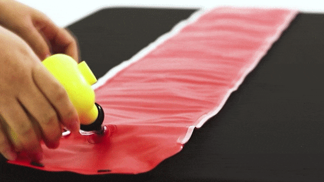 チューブタイプのフレキシブルなセーフパックは素材の特性上、空気を入れれば膨らみ、すぐに使用が可能です。