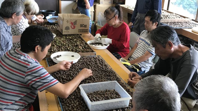 耕作放棄された畑から茶の実を収穫することで、農家に収入を提供し
