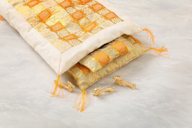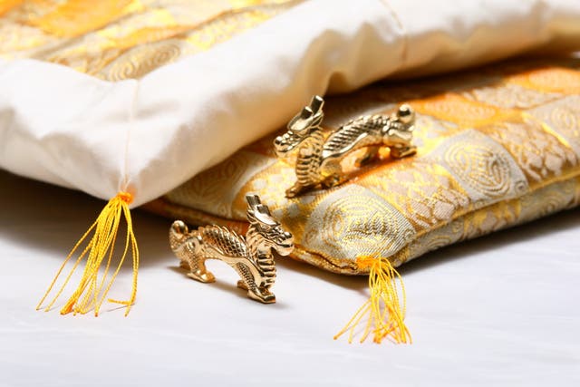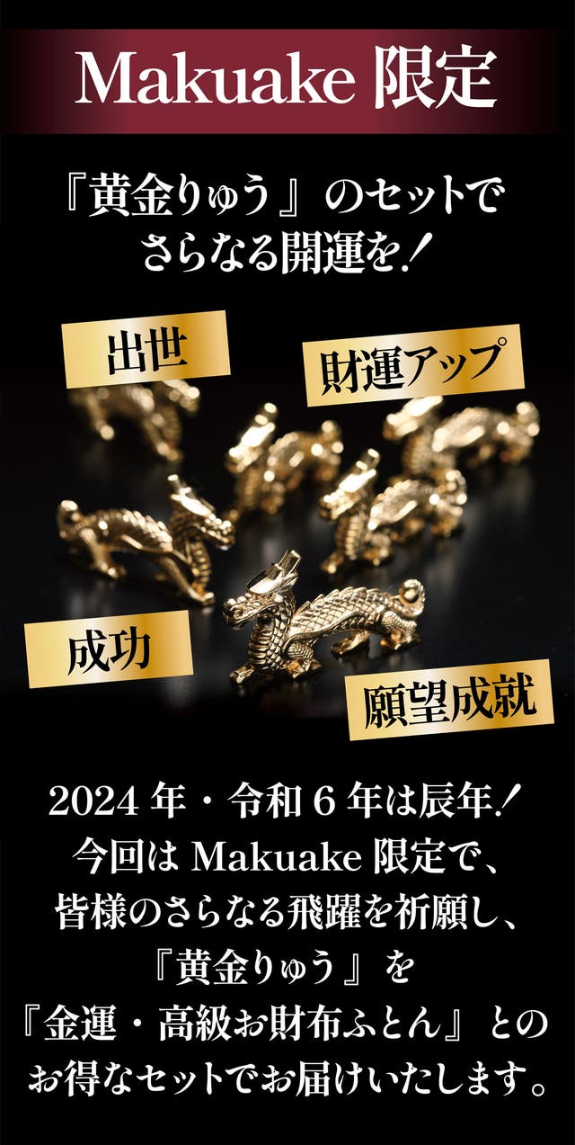 ●【Makuake割15%OFF】金運・高級財布布団1組+開運干支置物 黄金りゅう2対セットをお送りいたします。