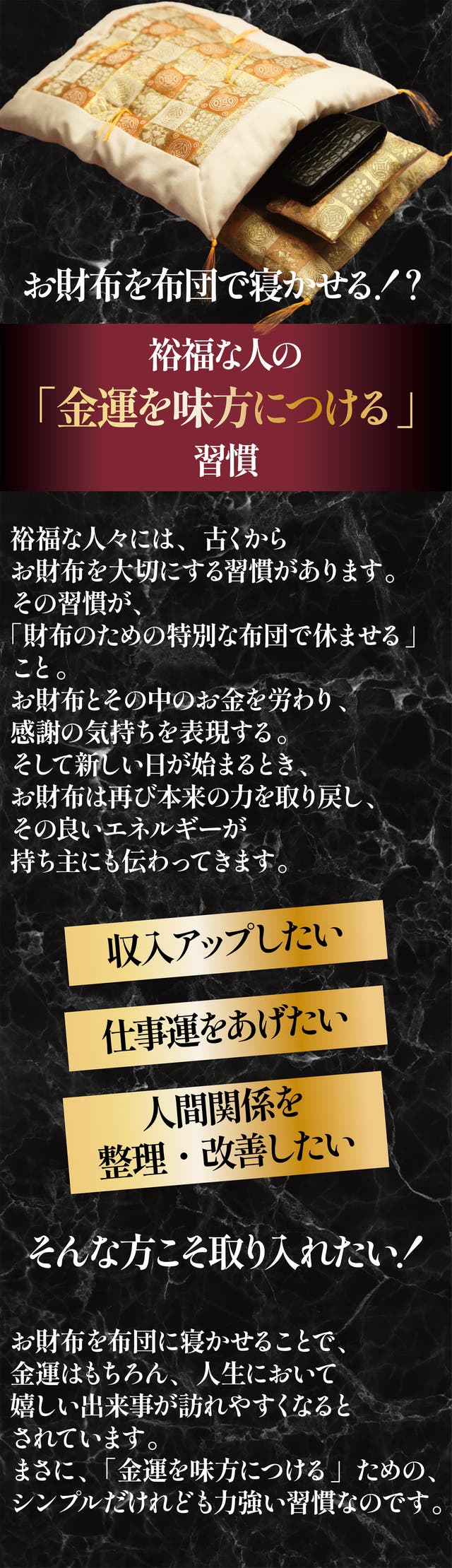 『金運・高級財布ふとん』との相乗効果でさらなる開運を!