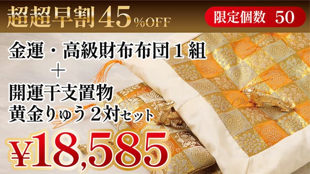 【超超早割45%OFF】金運・高級財布布団1組+開運干支置物黄金りゅう2対セット