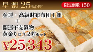 【早割25%OFF】金運・高級財布布団1組+開運干支置物黄金りゅう2対セット