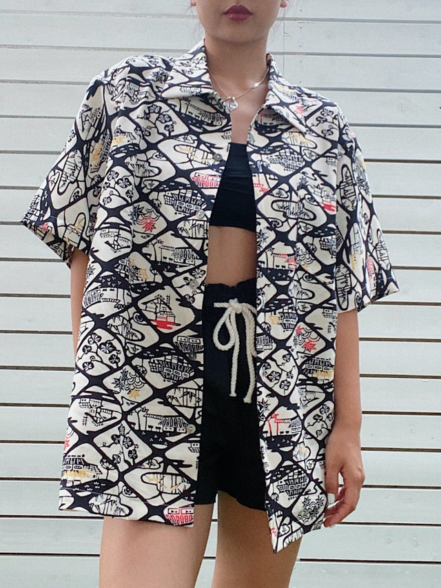 全てのアロハシャツにヴィンテージの着物が使用されています。ご購入前に必ずヴィンテージ商品ということのご理解の上ご購入をお願い致します。モニター環境や撮影時の照明によって実物と多少色合いが異なる場合がございます。
