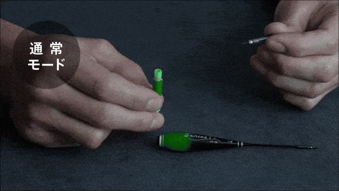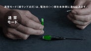 変光モード(当たりで赤ランプ点灯)は、本体を上から電池の(ー)に向かって差し込みます。