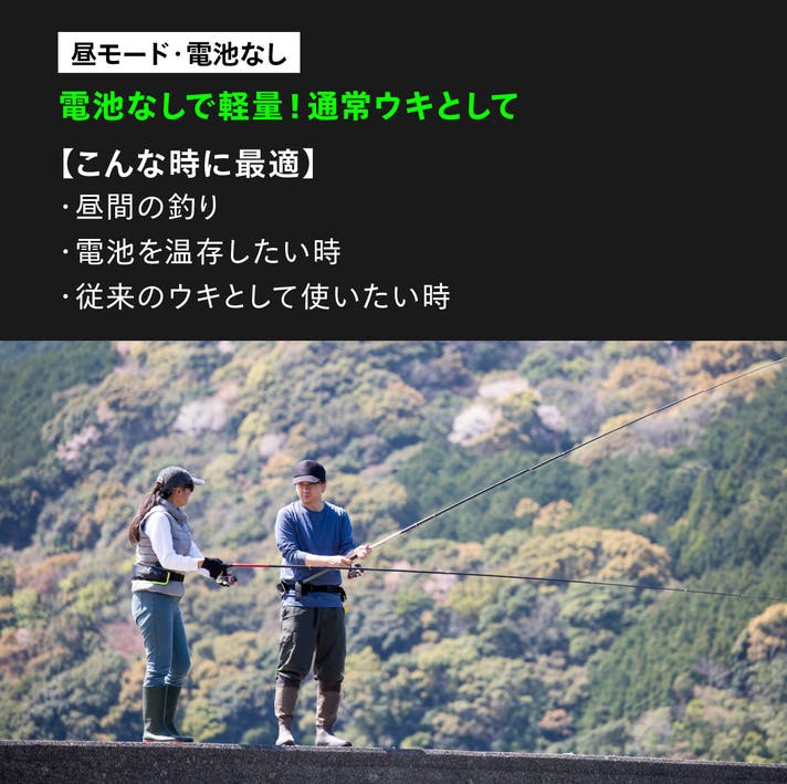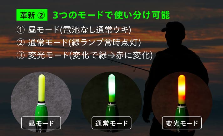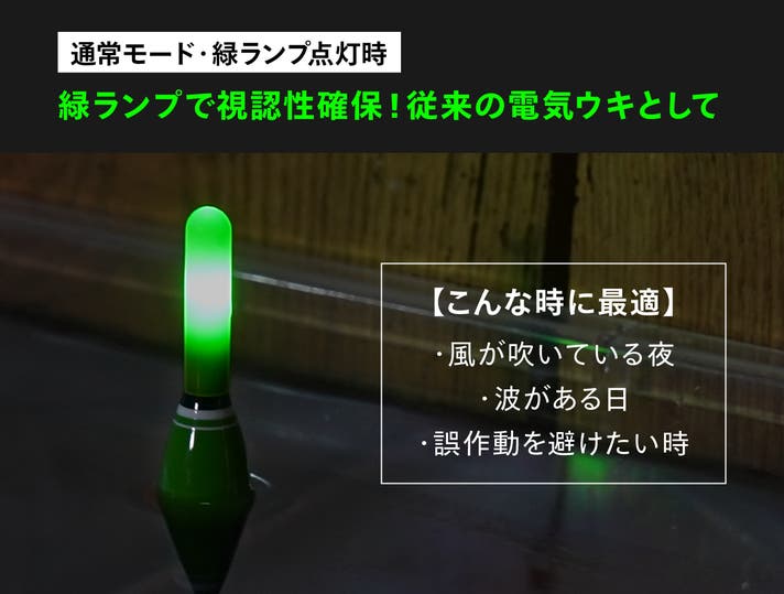 A. 通常モード(緑ランプ常時点灯)で従来の電気ウキとしてご使用いただけます。
