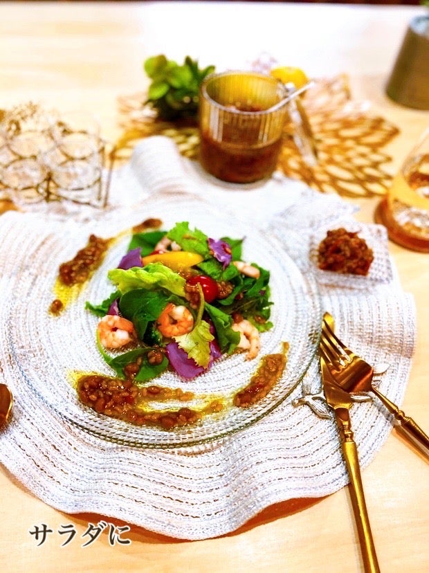 納豆と米麹を佃煮風に味付けした、そのまま食べても、味付けにも使える、発酵調味料です。