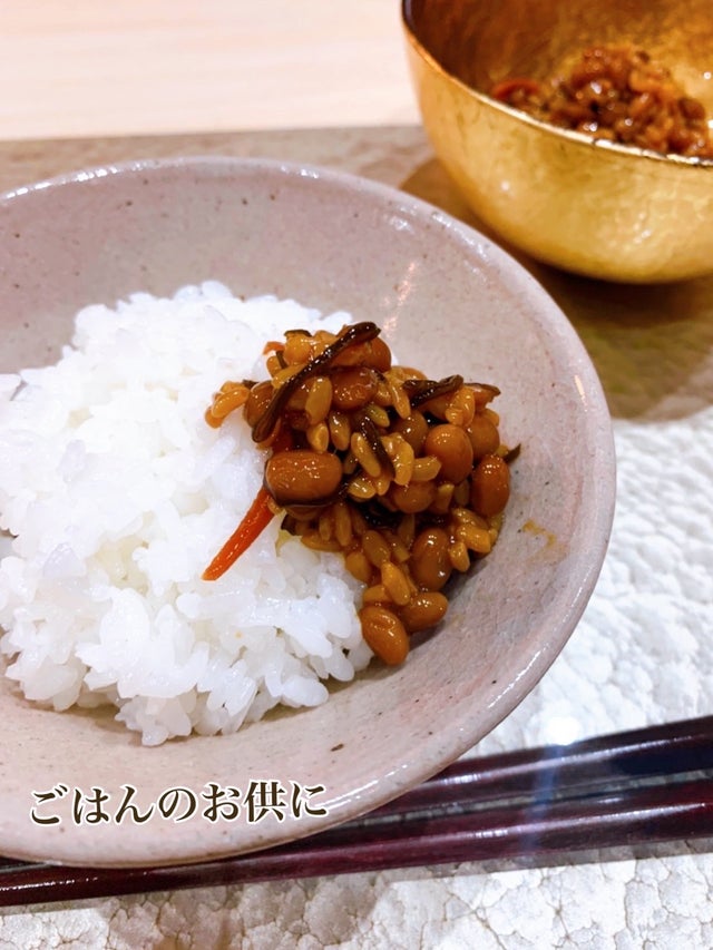日本人の口に合う、お醤油やみりんで味付けをし、麹の甘みや昆布の旨味が加わる事で、納豆の美味しさがより感じられるようになりました。