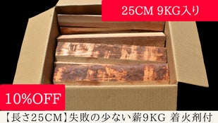 【早割10%OFF】失敗の少ない薪9kg 長さ25cm(送料込)