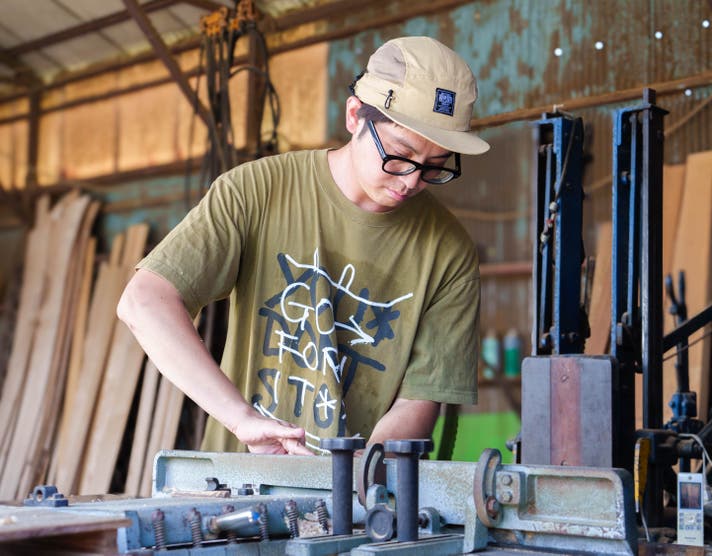 板の裏表を均等に削り、真ん中のいいところだけを使用します