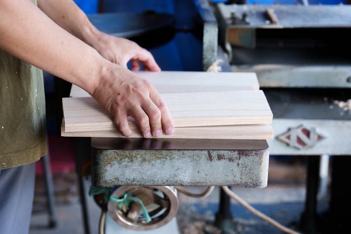 下削りをした後に、仕上げ削りをし、桐の美しい滑らかな表面に仕上げます