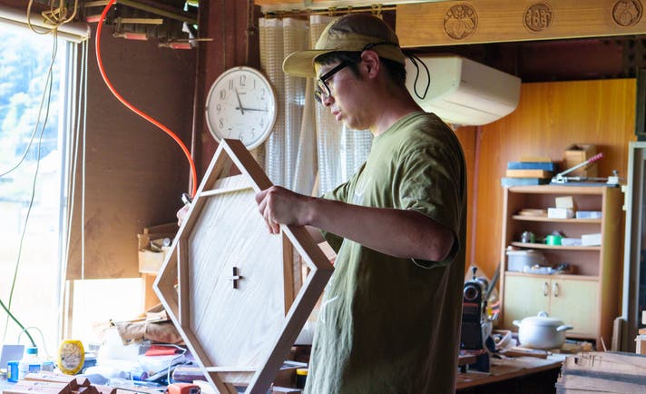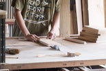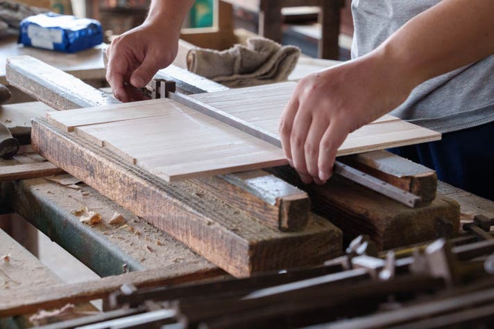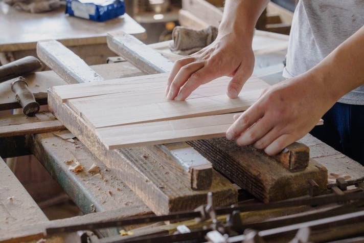 木目や色合いが自然になるように木を並べ、貼り合わせていきます