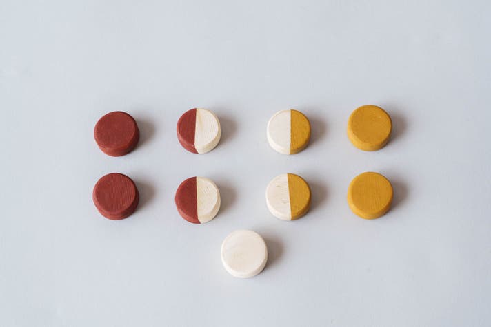 駒 18個(赤 6個・黄 6個・半分赤 2個・半分黄 2個・無垢 2個(うち予備1個))