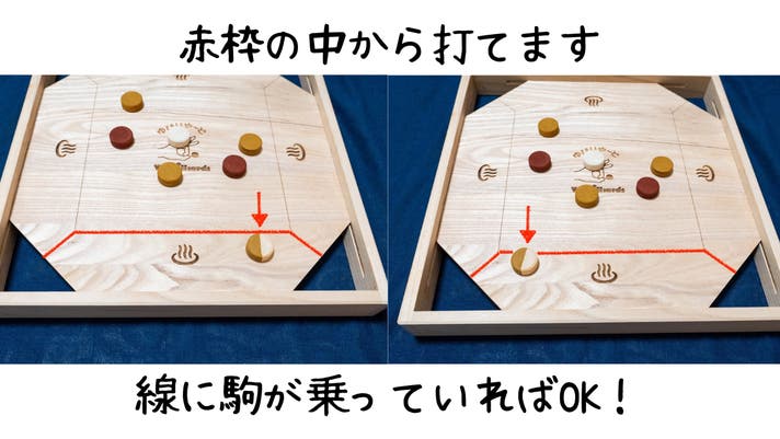 自分の持ち駒がコーナーに落ちてしまったり場外に出たら、続けて打つことはできません