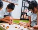 出来上がった盤の美しさに合わせ、駒は和風で自然な色合いの柿渋ペイントで塗装しました。