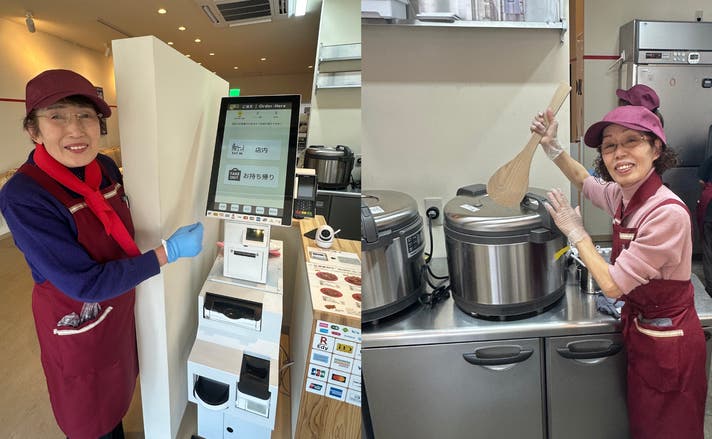 ばあちゃんがヤングに最新の券売機を操作説明。