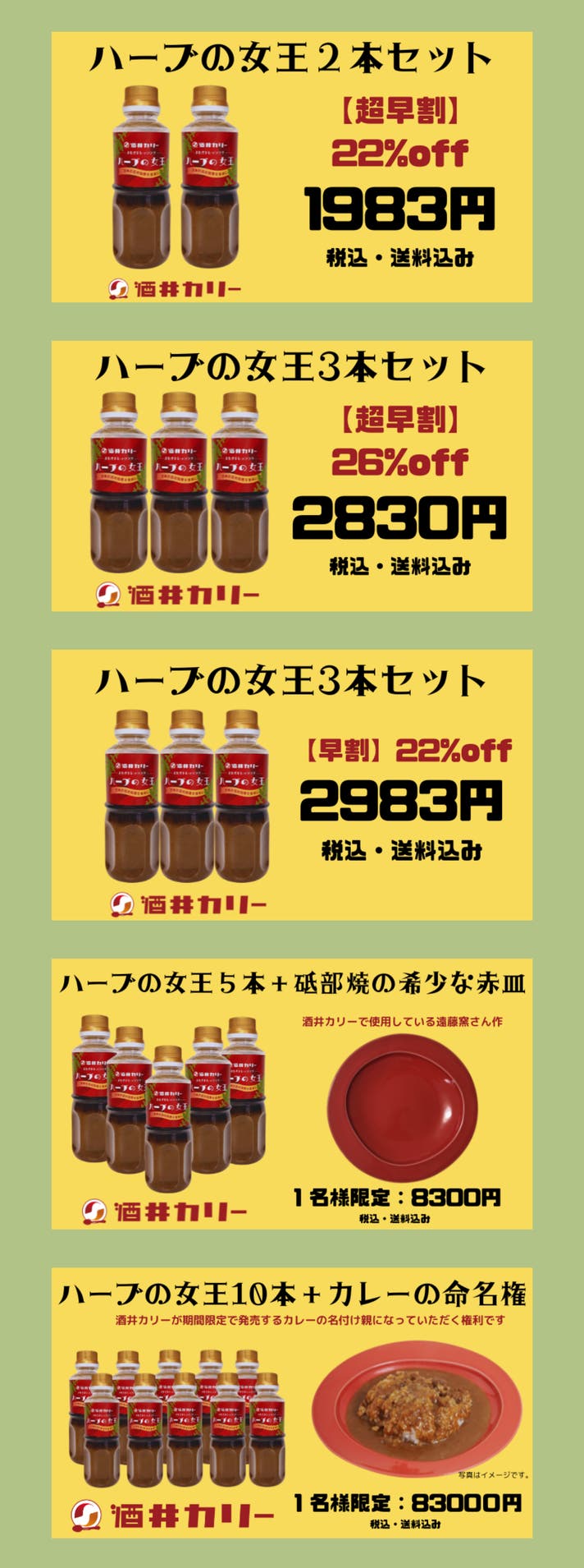 ハーブの女王 10本セット + 酒井カリー期間限定発売カレーメニューの命名権