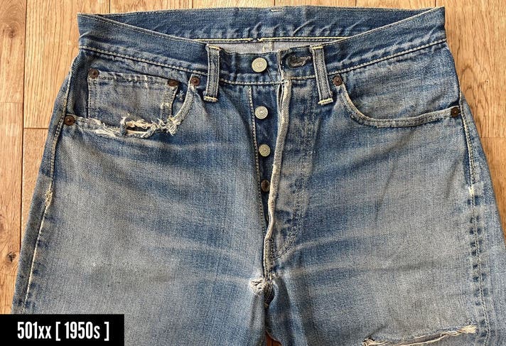 1950年代は技術の進化や新しい付属が流通し始めた過渡期だったこともあり、この頃のヴィンテージジーンズは、美しいタテ落ち感などデニムの品質が良く、洗練されたディテールが存在する年代で、多くのブランドが真似るほど完成度が一番高い時代だと思います。