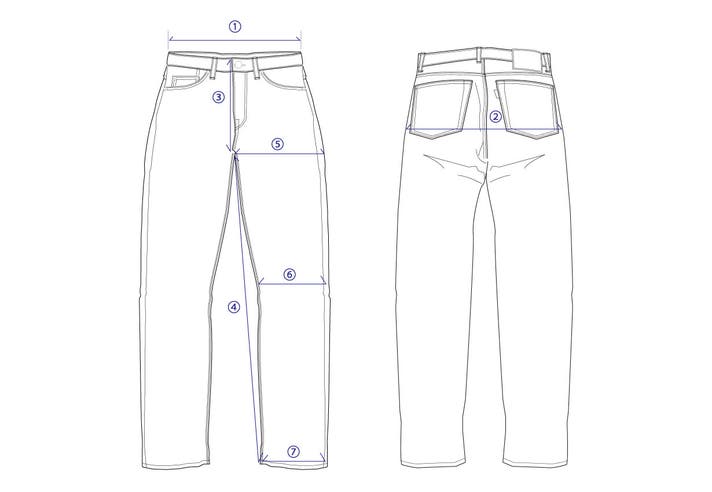 インディゴ同様に、世界屈指の加工技術で、着用期間を週3〜4日ペースで2年間着用したと想定した場合のフェード感をイメージしました。☆右ポケットは着用の度に財布を入れていた設定のアタリ感をイメージしております。※デザイン、パターン(型紙)はインディゴブルーと同じものになります。