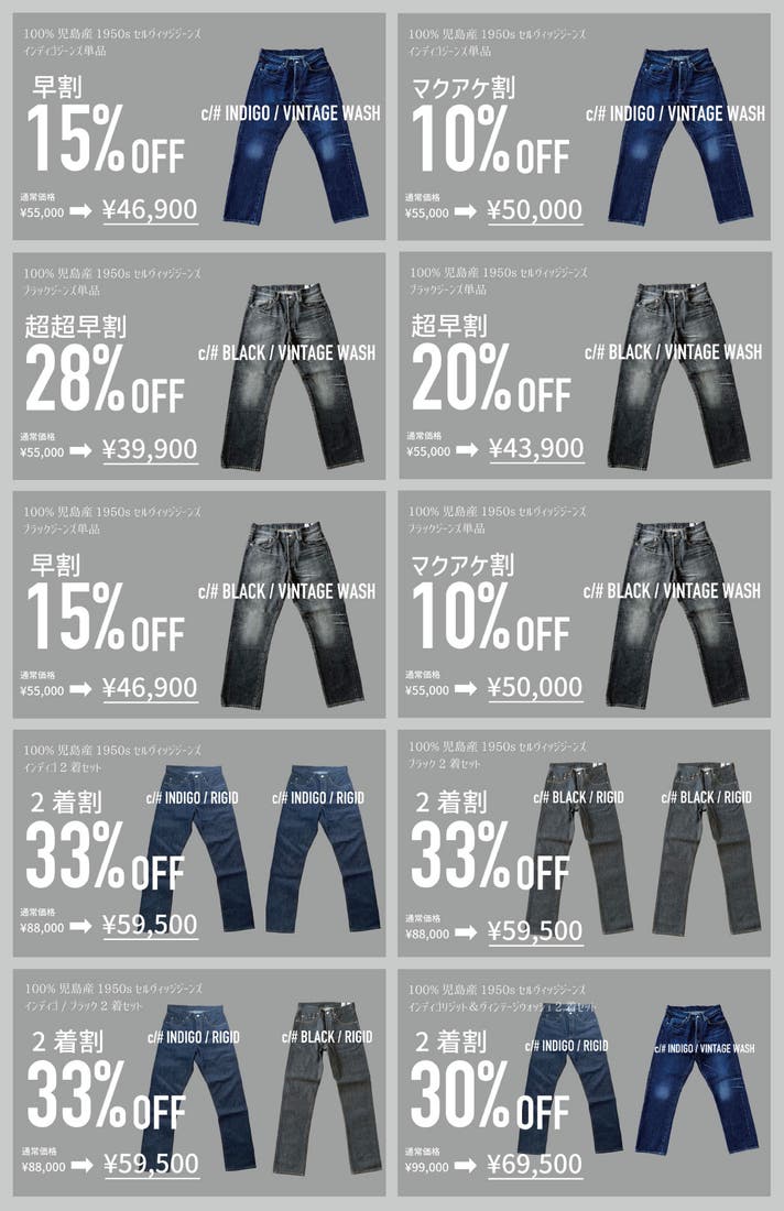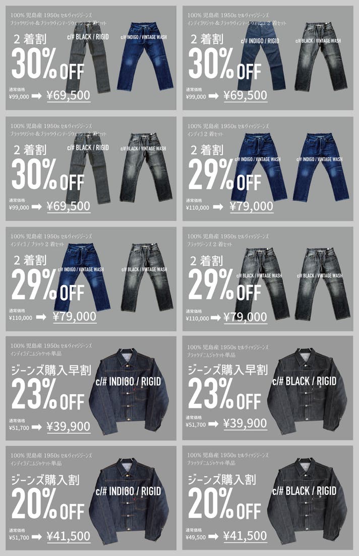 【超早割 限定20名様】100%児島産・1950sセルヴィッジジーンズ(WASH) 1着【20%off】
