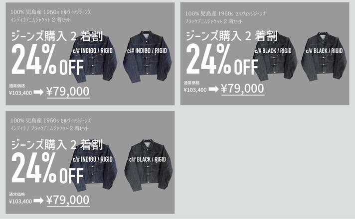 【ジーンズ購入2着割 24着】セルヴィッジデニムジャケット リジット インディゴ 2着【24%off】
