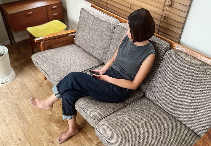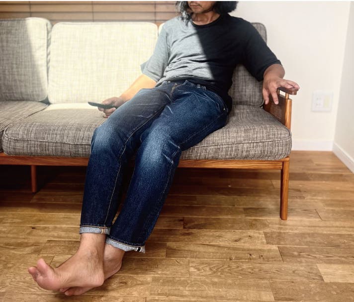 スマホが縦にすっぽり収まり固定されるため、スマホを収納しても快適に過ごすことができます。また、新しいディテールを無理やり付けた感じもなく、見た目は普通のジーンズなので見た目も問題ありません。