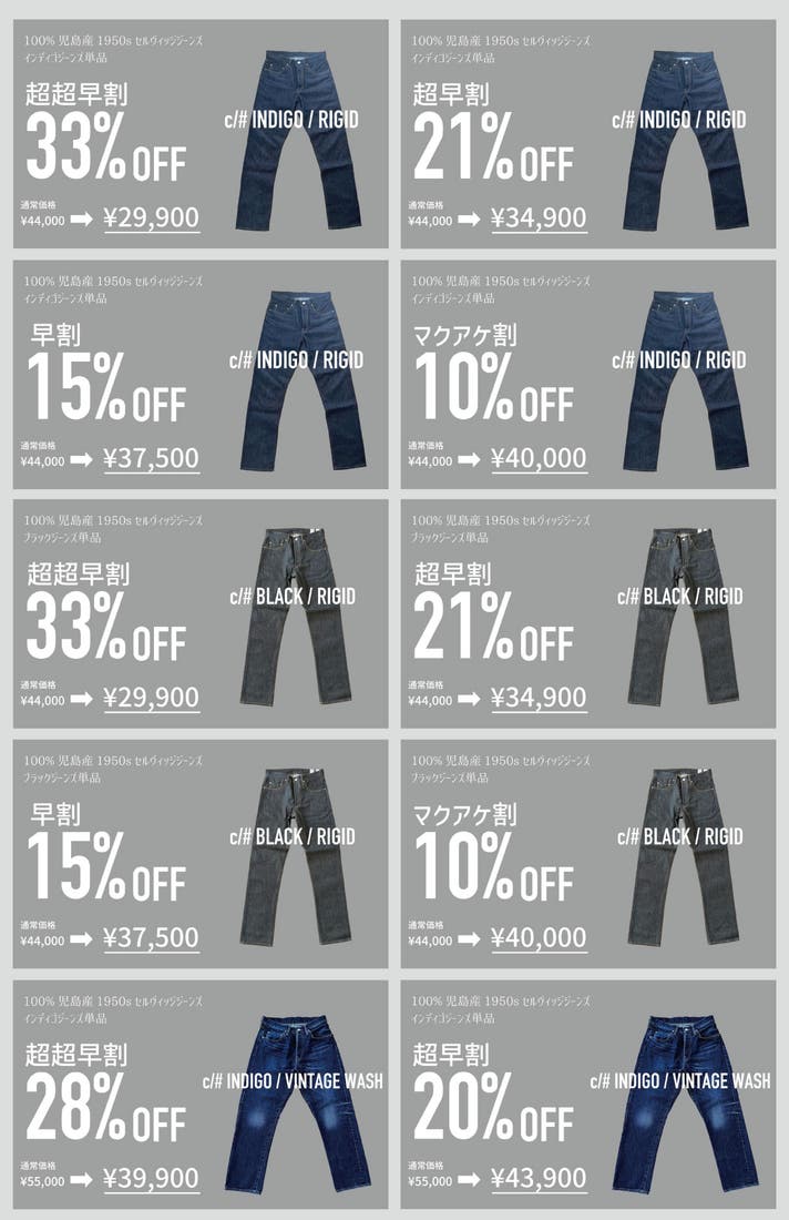 【超超早割 限定33名様】100%児島産・1950sセルヴィッジジーンズ(リジット) 1着【33%off】