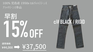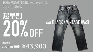 【超早割 限定20名様】100%児島産・1950sセルヴィッジジーンズ(WASH)ブラック 1着【20%off】