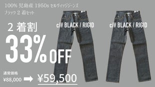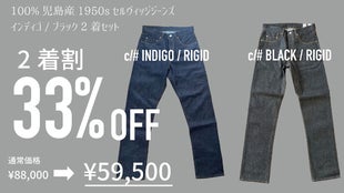 【2着割 限定33名様】セルヴィッジジーンズ(リジット) インディゴ・ブラック1着ずつ【33%off】