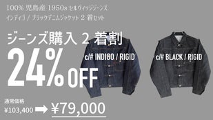 【ジーンズ購入2着割 24着】セルヴィッジデニムジャケット リジット インディゴ/ブラック 2着【24%off】