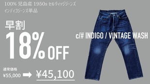 【早割10名様】1950sセルヴィッジジーンズ インディゴWASH 1着