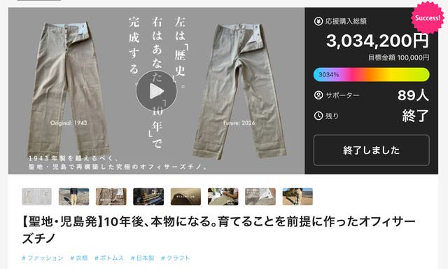 「Makuake(マクアケ)」は、実行者の想いを応援購入によって実現するアタラシイものやサービスのプラットフォームです。このページは、 ファッションカテゴリの 「【アンコール】聖地・児島発|10年後、本物になる。育てる前提のオフィサーズチノ」プロジェクト詳細ページです。