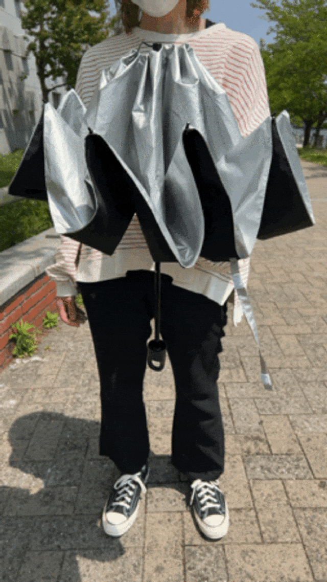 [SAKASAMAKASA]は、その名の通り「逆折り収納」が最大の特徴になっています。雨で濡れた表面が内側に収納されるように設計しました。