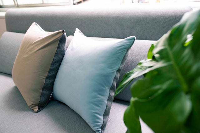 何気に置かれたクッション。ゴシゴシ!スマホやタブレットをクッション拭くことができます。そしてクッションカバーを洗うことが出来ます。