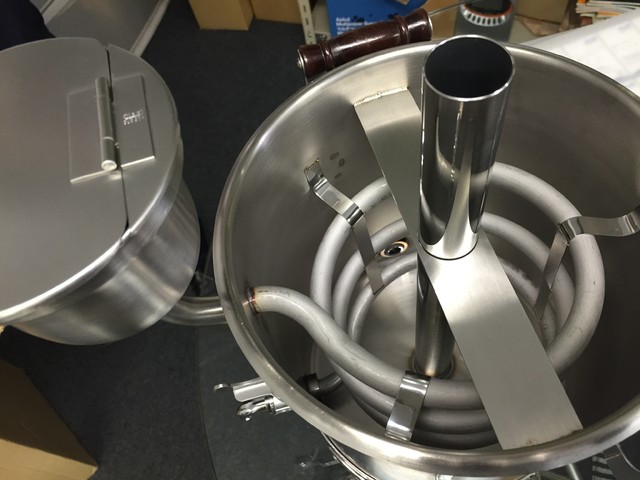 この酒燗器は鍋のあり型を使った簡易なもので、ガスでお湯を温めるので安全性に問題がありますし、温度のコントロールも出来ません。電気に変更し、サーモスタットを付け、デジタル温度計を装備したい。また、デザイン面でも、目立つように真鍮メッキを施したいと考えています。