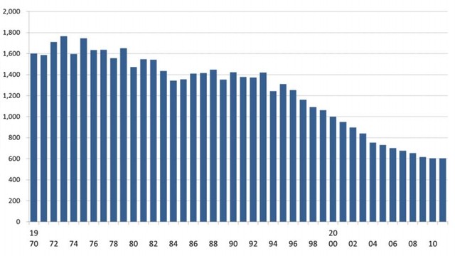 清酒の課税移出数量の推移(国税庁「酒のしおり」より)