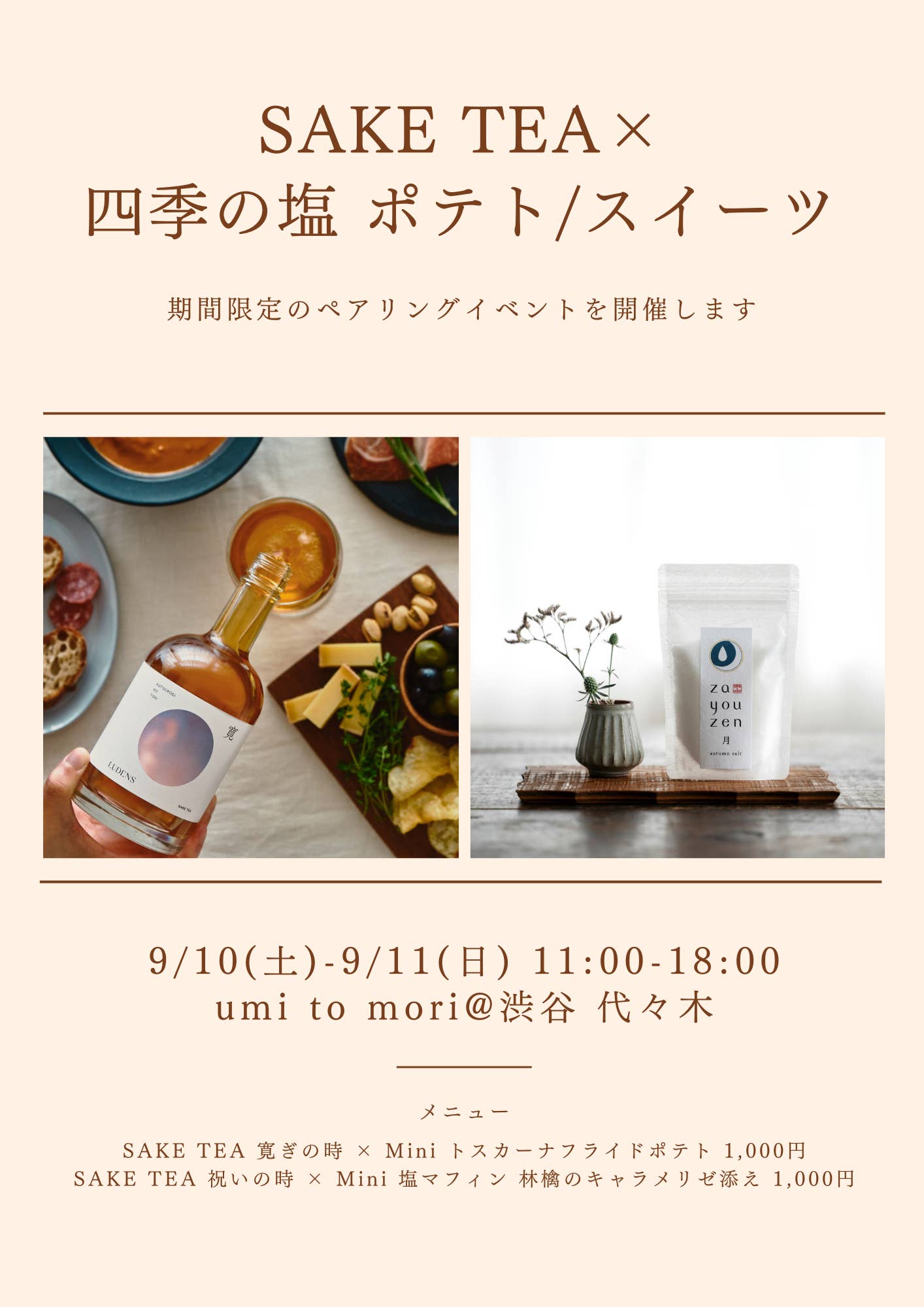 その最後を締めくくるべく、9/10(土)-11(日)、渋谷・代々木のライフスタイルショップ「umi to mori」でSAKE TEA初のペアリングイベントを開催することが決まりました!